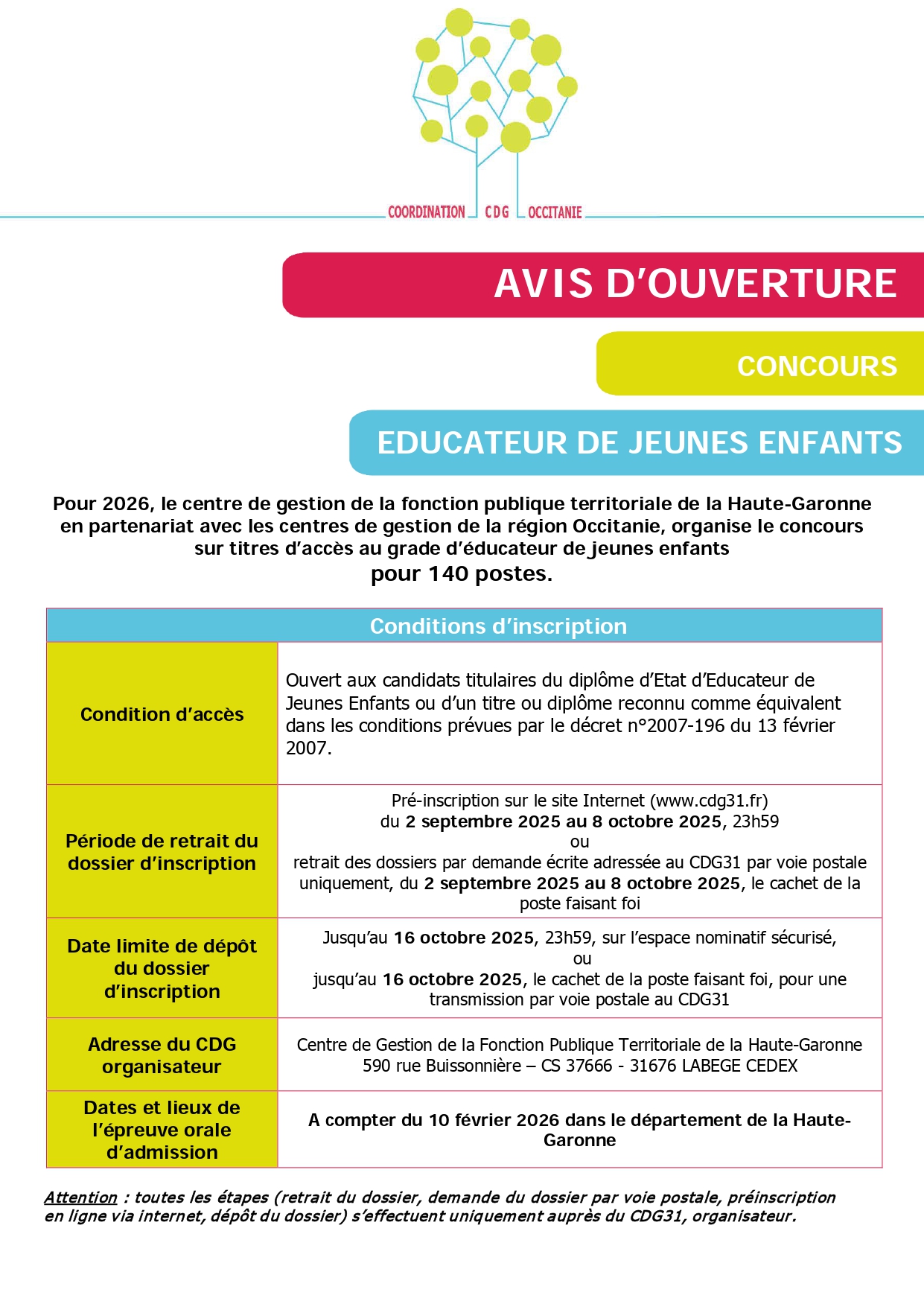 La région Occitanie communique sur les inscriptions aux concours d'Éducatrice/Éducateur de Jeunes Enfants, Auxiliaire de puériculture et Infirmière/Infirmier en soins généraux