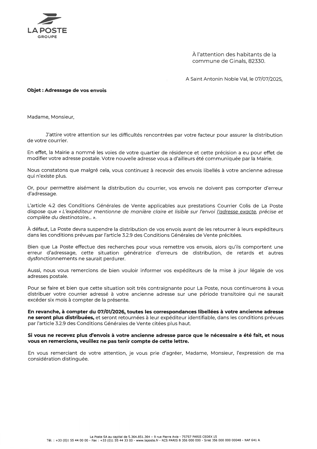 Arrêt de la distribution du courrier aux anciennes adresses à partir du 7 janvier 2026
